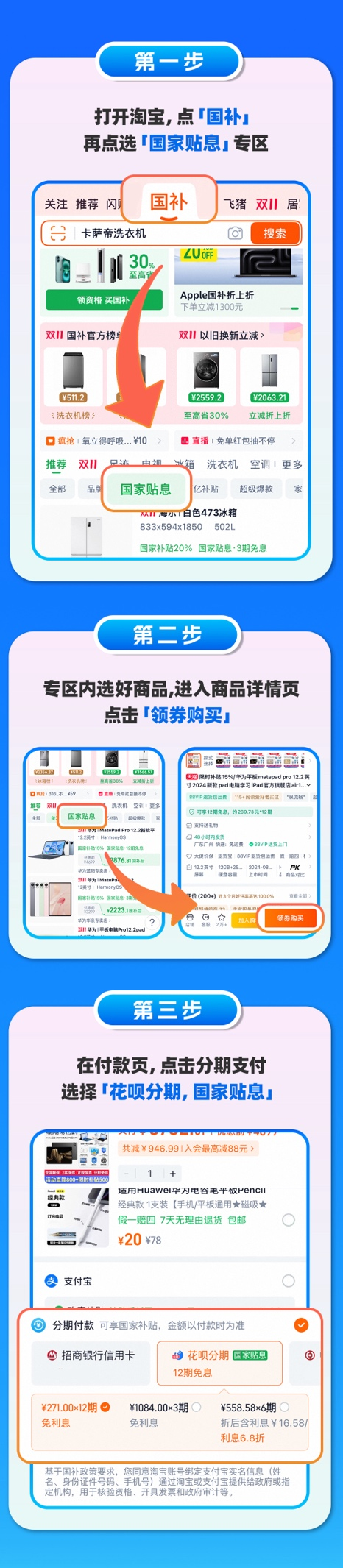 10月30日,淘宝天猫正式上线了今年双11的“国家贴息”商品专区,当消费者购买带有“国家贴息”标识的商品,选择花呗分期付款时,就可以享受国家贴息。